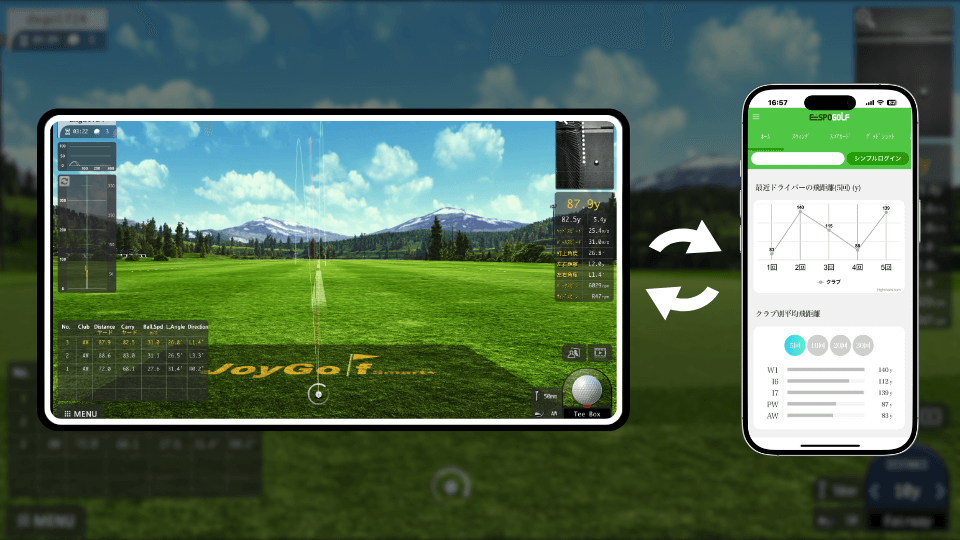 スマホアプリとの連動で、自分の練習データやラウンド戦績、スイング動画などの保存が可能。いつでも確認できます。
