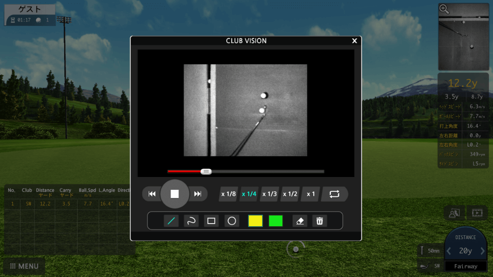 弾道測定により弾道が表示され、左右のばらつきやヘッドスピードなどの各種数値もまるわかり!