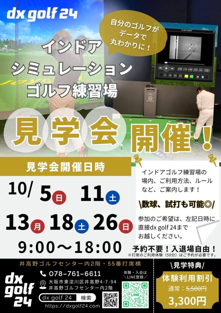 9月の見学会のご参加、誠にありがとうございました。dx golf 24では8月にゴルフシミュレーターをアップデートし、ますます精度の高い練習が可能になりました。9月の見学会ではそんな次世代の練習方法を実際にお試しいただき、大変ご好評をいただきました。
