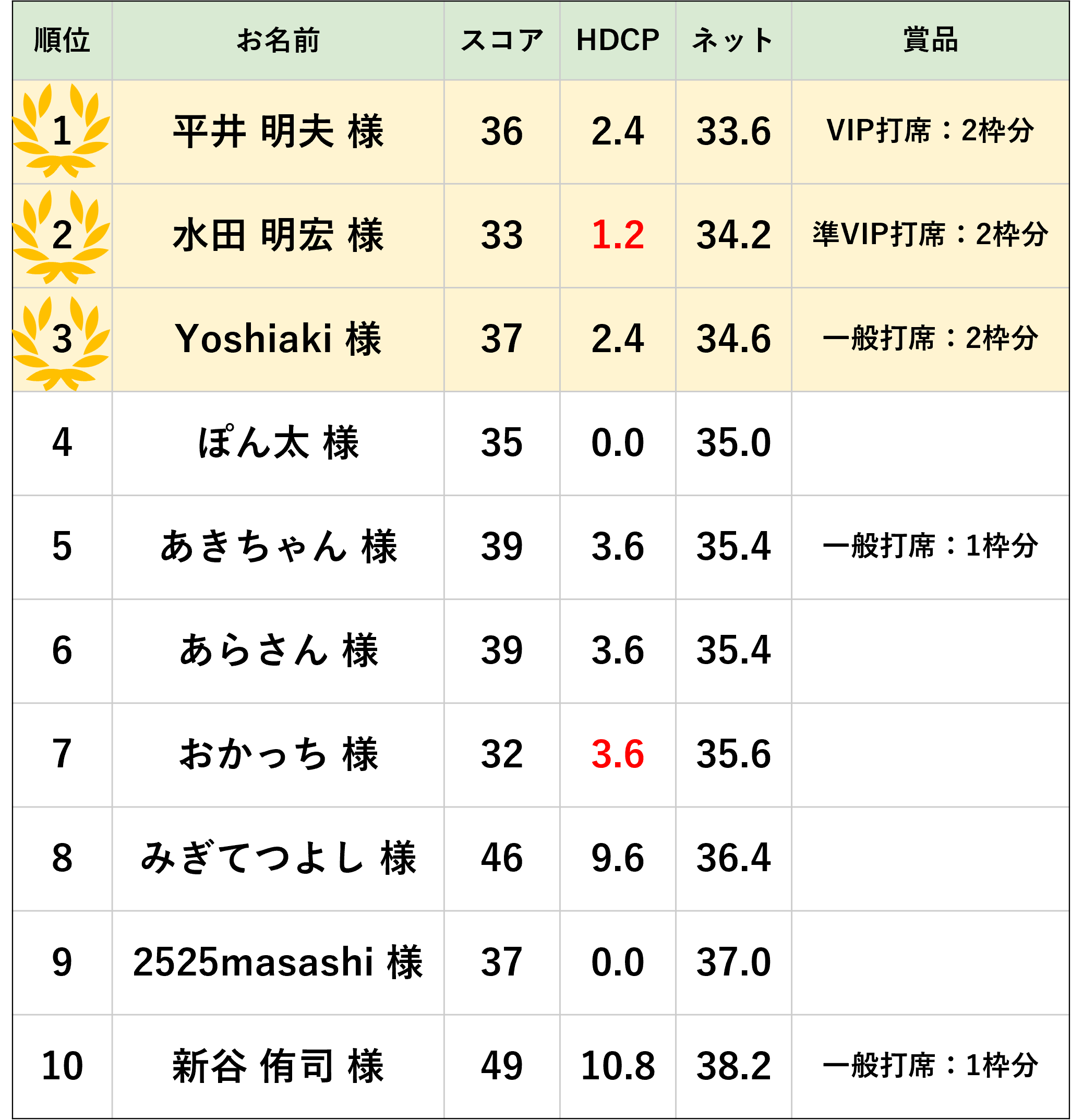 今大会は、10月9日(木)開催予定のゴルフコンペ「Friendship Challenge」の前哨戦で、同コンペの会場である小野グランドC.Cのシミュレーションコースを対戦していただきました。