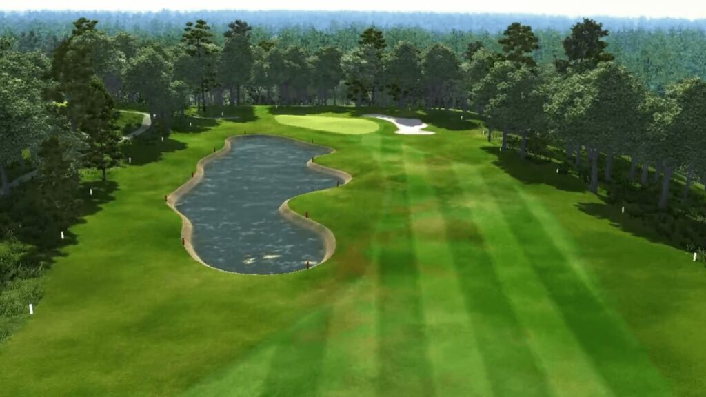 シミュレーションコースは、その再現性が非常に高いのが特徴です。木の位置やリアルな芝、バンカーの質感など細部まで忠実に再現されているため、実際の戦略を立てながら練習できる点が大きな魅力です。