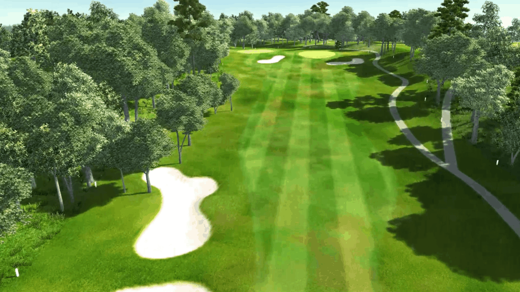 シミュレーションコースは、その再現性が非常に高いのが特徴です。木の位置やリアルな芝、バンカーの質感など細部まで忠実に再現されているため、実際の戦略を立てながら練習できる点が大きな魅力です。