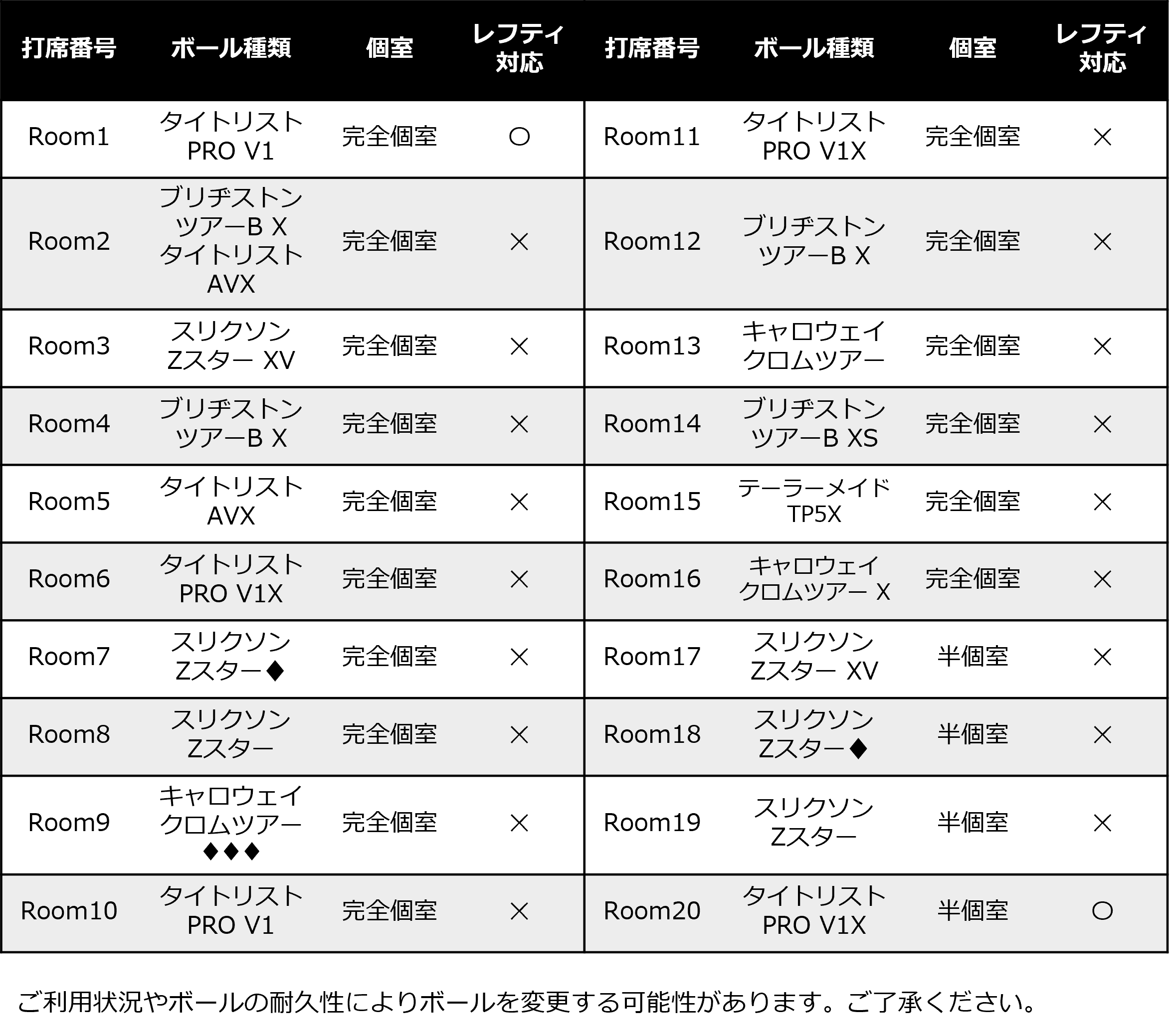 それぞれの個室全室に、シミュレーションゴルフ”JoyGolf smart+”を設置しております。また、オートティーアップでスムーズな練習を可能にする他、ティーチングプロによるレッスン対応や、高級ボールが全打席で使用できるなど、ご満足いただける設備が1室1室に詰まっています。