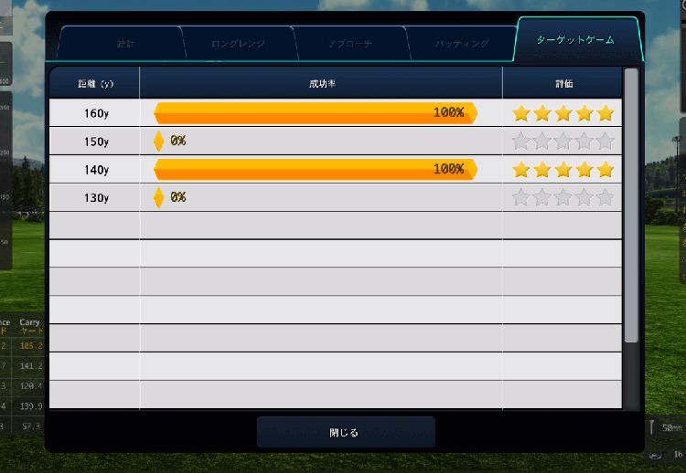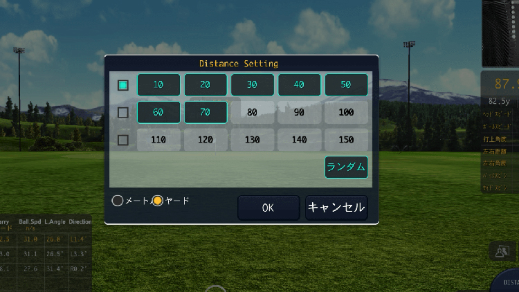 150ヤード以内を10ヤード刻みで練習でき、距離感の精度を高められます。ランダム設定にも対応しており、実際のラウンドで求められる“対応力”も強化。ショートゲームを磨きたいゴルファーに最適です。